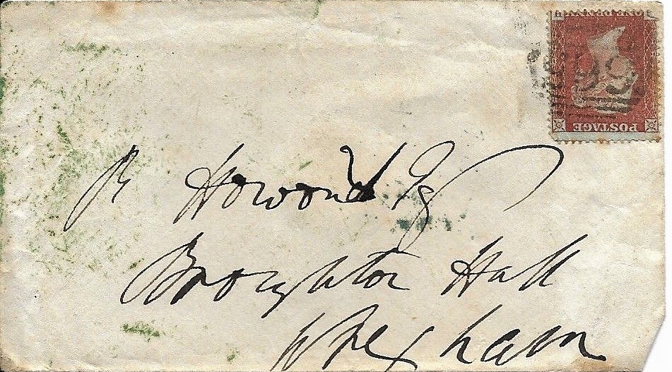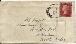 A visitor to the website has contributed these images of letters sent to Broughton Hall in the mid 1800's. The stamp of the day was the Penny Red which was introduced in 1841 and was in use until 1879. These letters were posted in 1856 and 1858 from Liverpool and Wrexham.