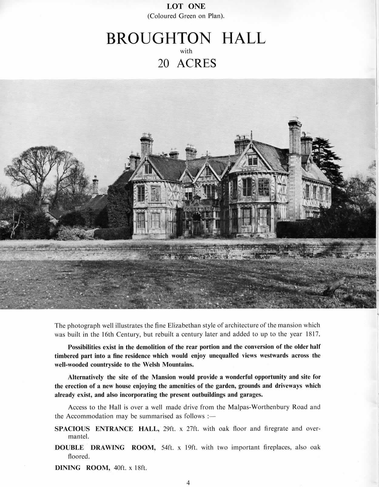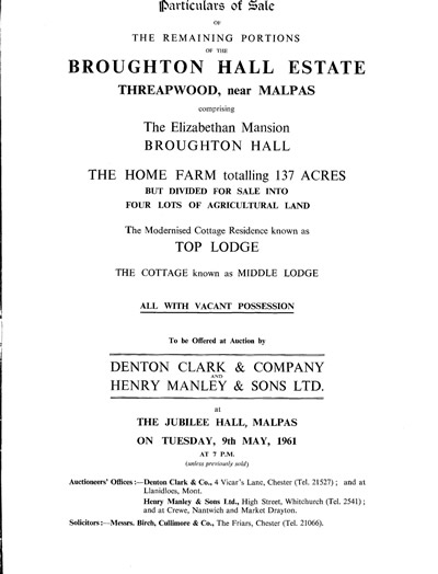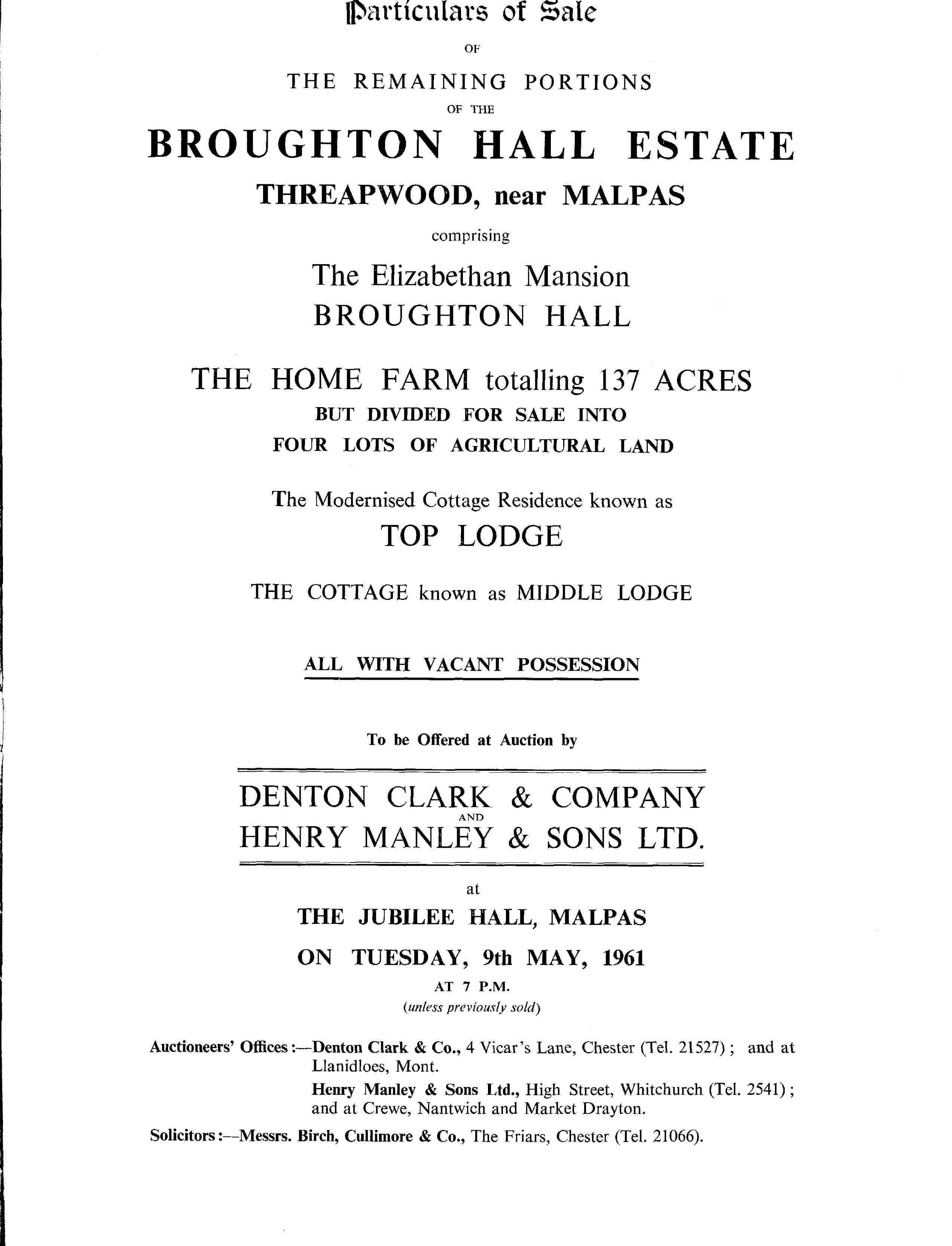 The Estate belonging to Broughton Hall was finally put up for sale in the summer of 1957 and the particulars below were put forward:-