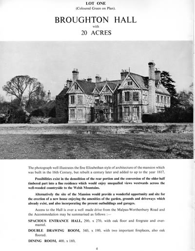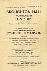 A copy of the Swetenham Whitehouse auction sale particular detailing the antique and other residential contents of Broughton Hall can be viewed by clicking on the relevant (buff) front page below.