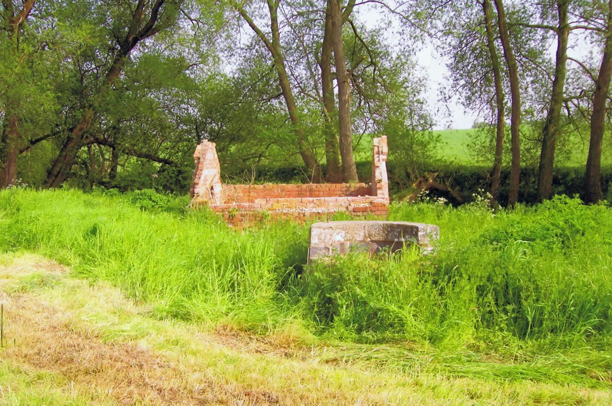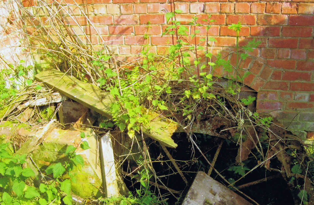 Broughton Hall had it's own water supply which was pumped some 1250m from a pump house built at Queens Ford Bridge which spans the River Elk or Worthenbury Brook (AKA Sarn Brook). The photos in the gallery right show what is left of the building today with a well in front of it. The water from the river only provided power for the pump which in turn pumped fresh spring water to the house. In turn electricity powered the pump and finally mains water arrived some time in the 1950's. Water was carried in a large diameter lead pipe, remains of which can be seen in recently excavated tunnels adjacent to the site of the former house. You can click on each image to enlarge. |