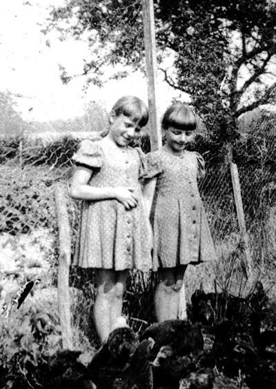 Jill Broad was our closest friend while we lived in Threapwood. We would play around the side of the house where there was a little alcove. It had a long seat against the wall. We played with dolls, dressing and undressing them. I think they all belonged to Jill. They were such happy days, in what we called "Rose Cottage". Every now and then Jill's mother would come rushing around the back, give a quick look-in, and then back to the house. Sometimes she would ask us to pick berries for a pie she was making. We would just be taking our time and messing about, while we were supposed to be picking. She would have to come out two or three times to see how much we had, before there was enough for a pie. On Saturdays it was our job to clean out the hen house. It was at the end of me field, right next to the road. As the hen house was elevated, we could see over the hedge.