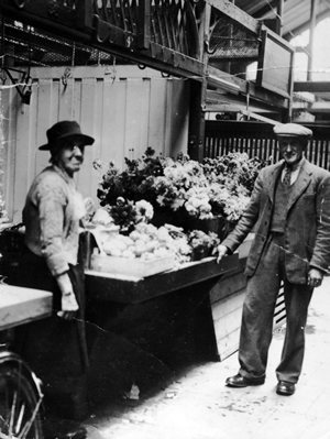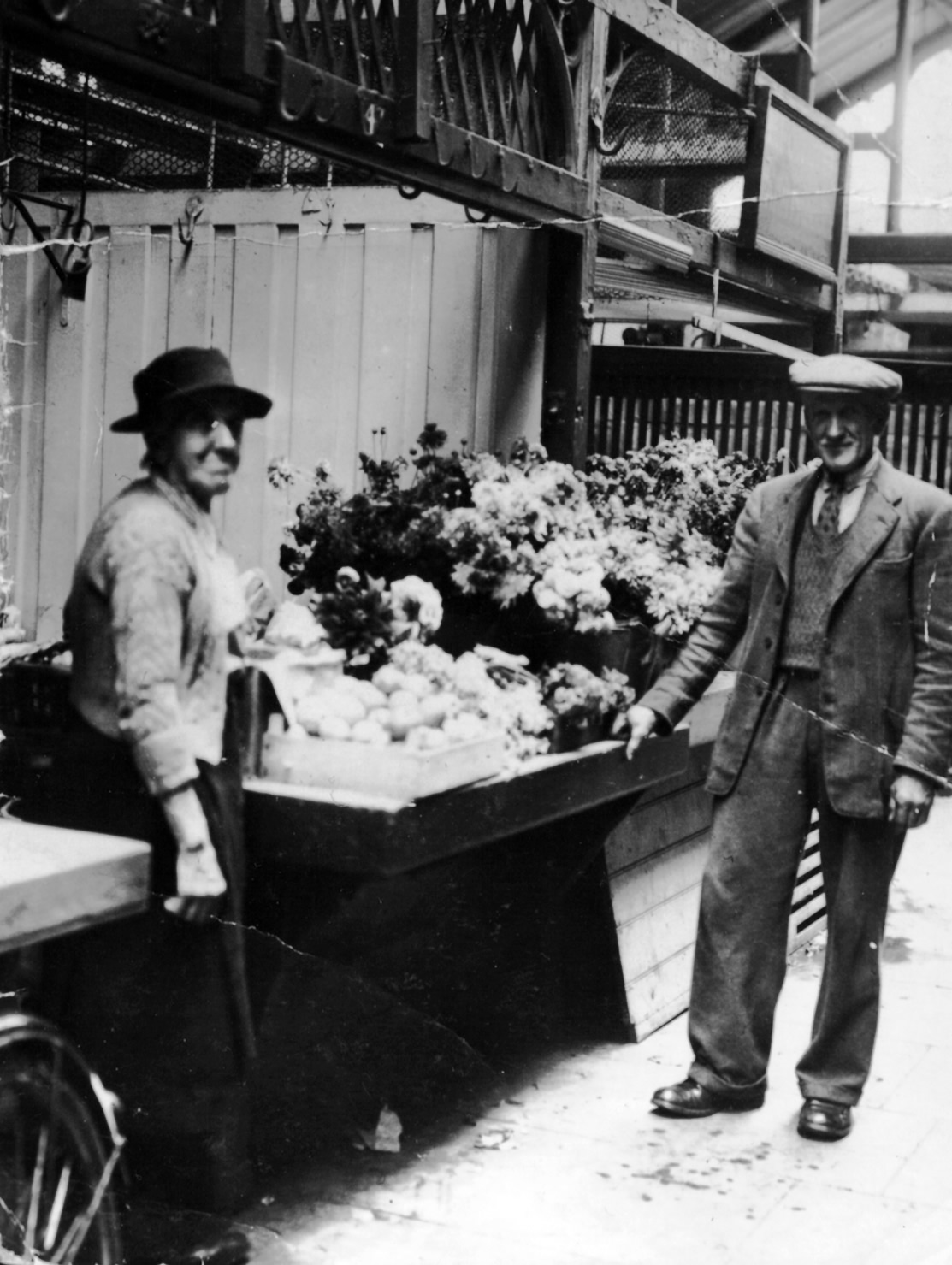 Annie Beckett and Edmund Beckett pictured at their stall in Wrexham Market. Date unknown. Picture courtesy of Liz Thomas. |