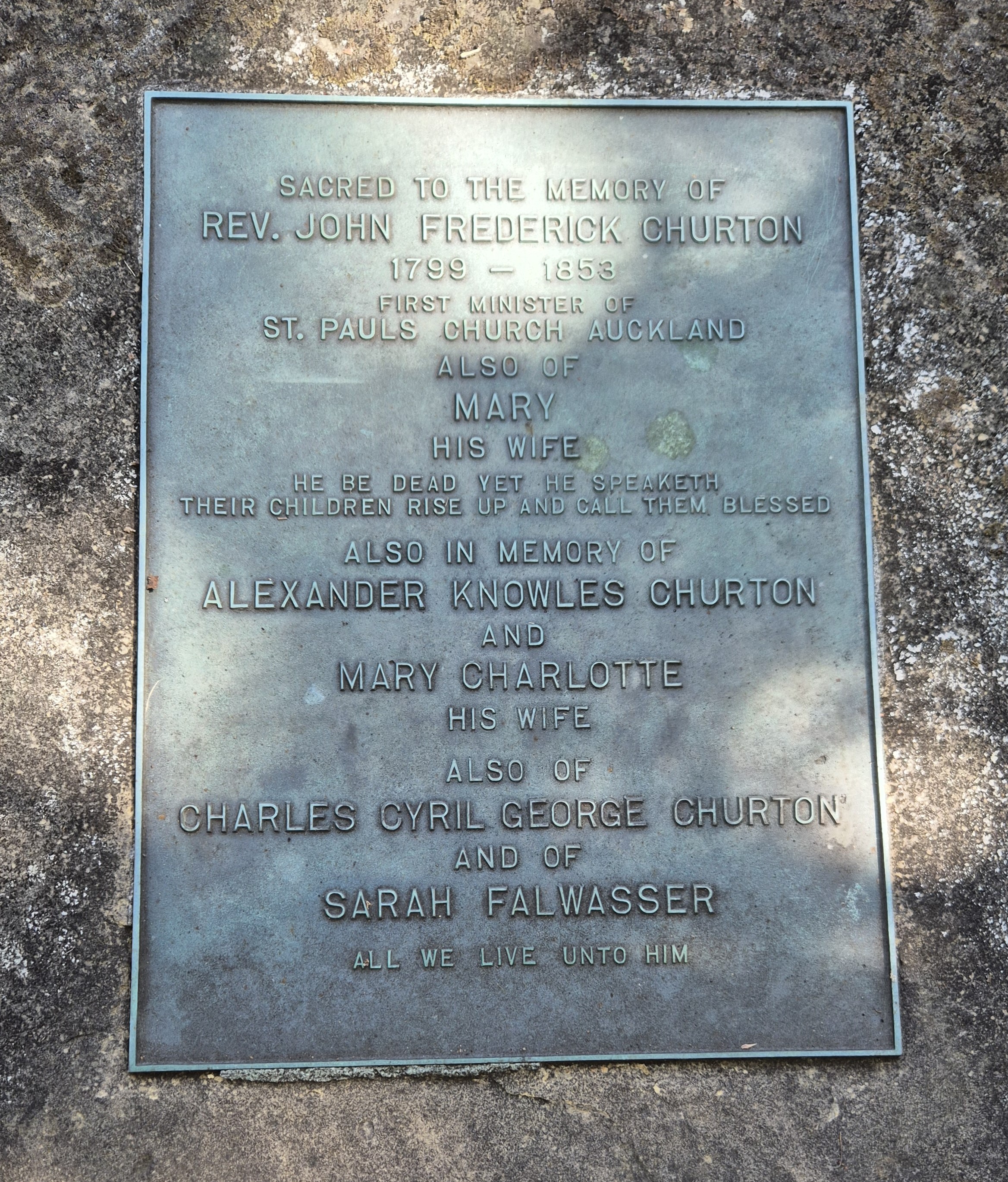 The Reverend Churton, at the request of Governor Hobson, and with the sanction of the Bishop of Sydney, consented to take the office of colonial chaplain based in Auckland, and the incumbency of the yet to be constructed St. Paul's Church. Mary Churton and her family followed John to Auckland in February 1841.