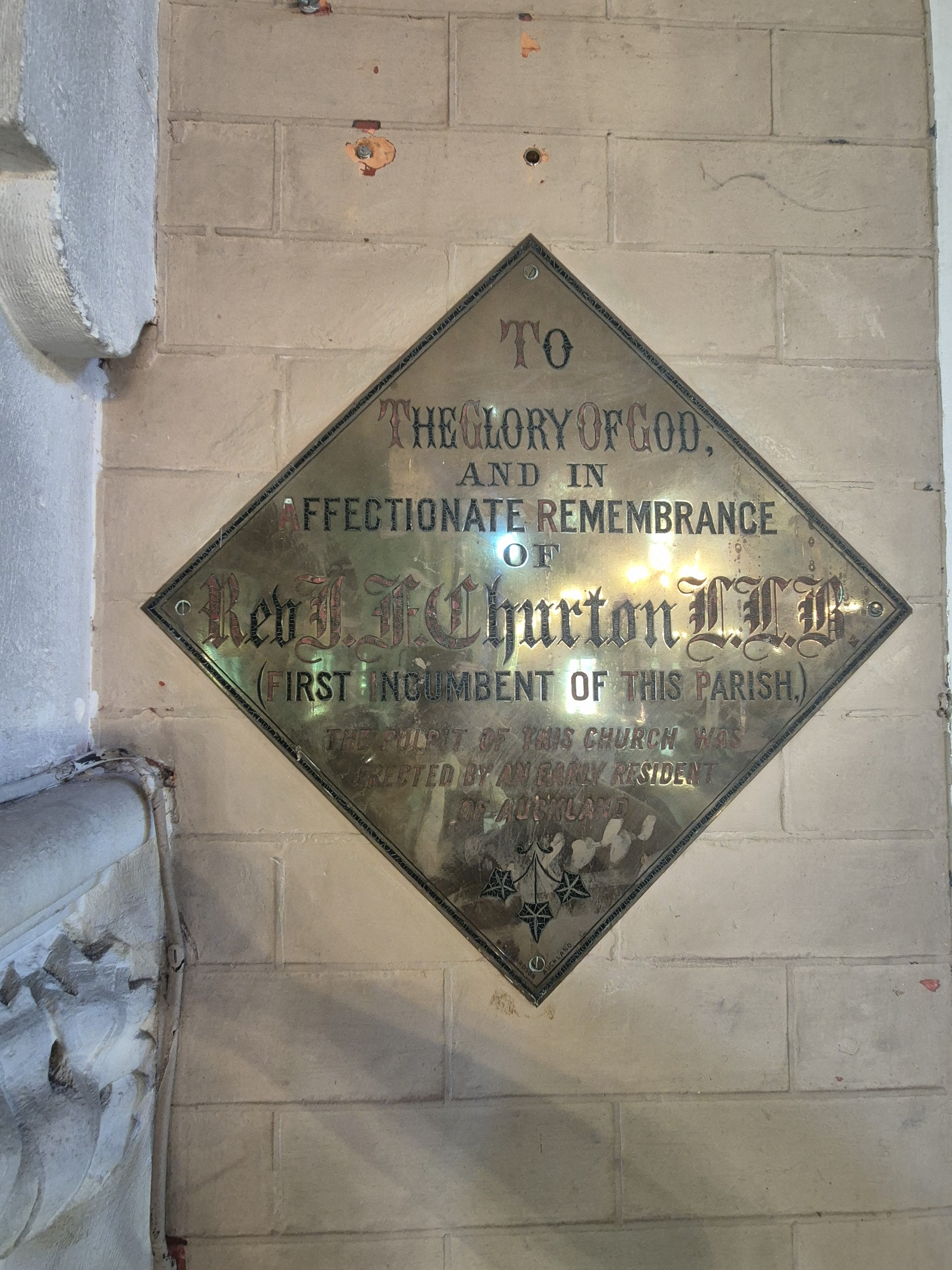 Subsequent to the submission of this article its contributor Bruce Woodhouse visited Symonds St Cemetery in Auckland and photographed the Churton grave. He also visited the current St Paul’s Church which replaced the original church in the 1890s. The photos taken during that visit are below.