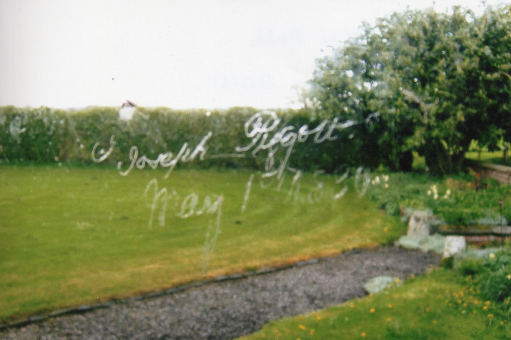 | Etched engraving on window by Joseph Piggott May 1880 | ||