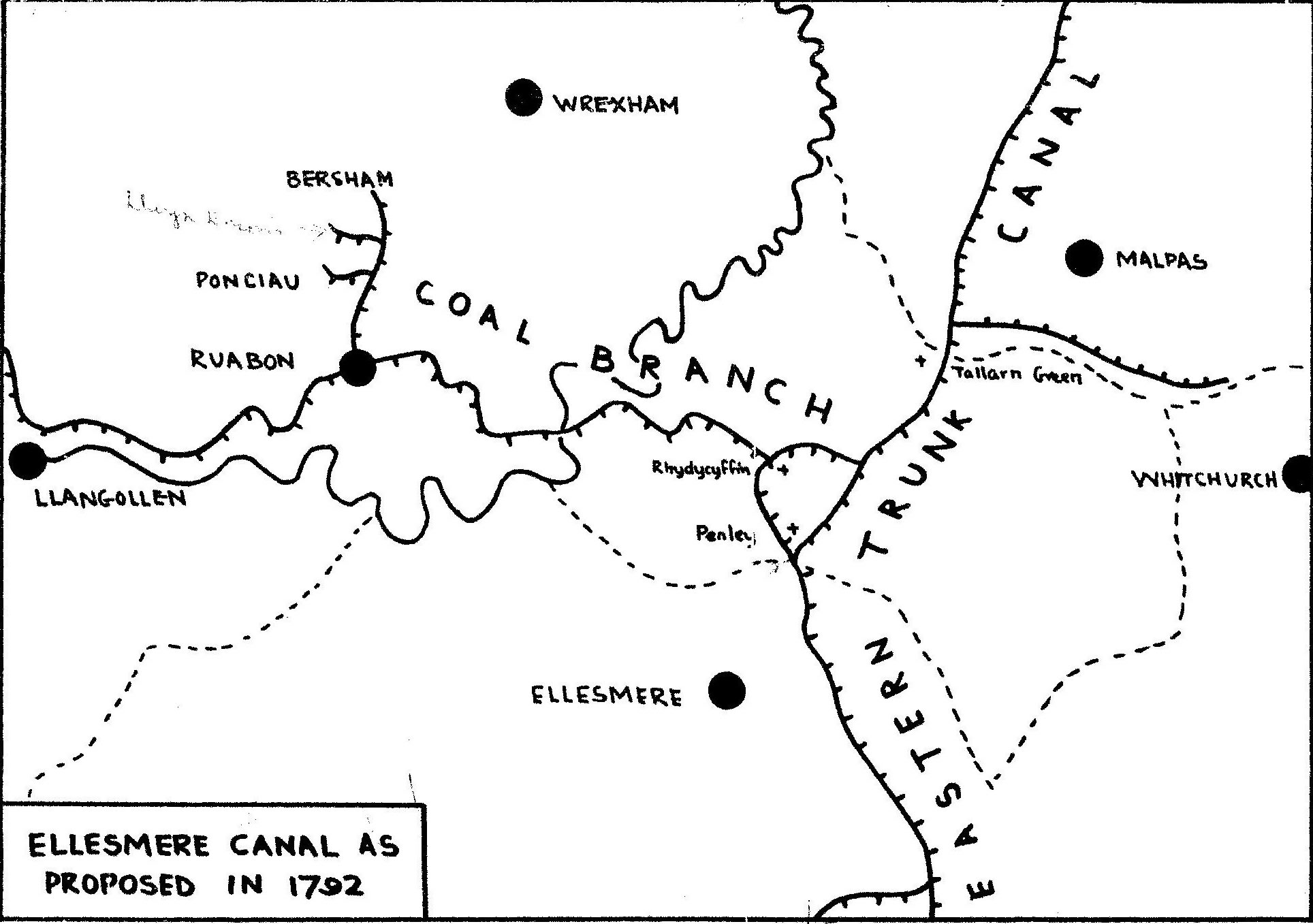 Initial work focussed on the route across the Wirral from Chester to what became Ellesmere Port and on the mining/quarrying area around Ruabon. In both cases, short sections of canal had immediate commercial value while the plans for the grander scheme of a network of canals between the Severn and the Dee Valley were developed.