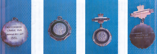 My name is Stephen Fowles and I hailed from lscoyd. I played Cricket for lscoyd and Fenns Bank for 45 years and Football for Redbrook. The one person I know well (referred to above) is John Bickley. Regarding the section above on Sarn Rovers l was surfing the net intending to research the Goalkeeping career of my late uncle,Jack Fowles. I was always fully aware that he played for the Sarn and frequently checked out the 1952/53 team picture in the Queen's Head. On reading the Sarn Rovers section, I realized that I may have something of interest. When my Grandmother passed away, I was asked if I would like a keepsake. So I accepted Jack's football cup and medals. Amongst them I found two medals (see below) referred to in the article. I appreciate that you may be aware of these, however, there will be a very small number in circulation. They are not for sale under any circumstances. Uncle Jack was tragically killed ln a motorcycle accident, not long after I was born. As for the 1953 team, I knew - Frank Dimelow, Gordon Clutton, Doug Clorley, Reg Rickering,Derek Bell and Jack Parry.