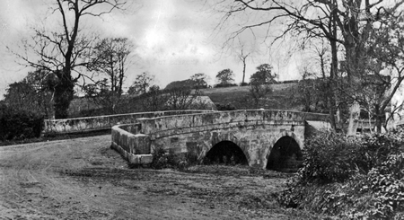 Another bridge in Threapwood (not pictured) is that which carries the Malpas road over Flennens Brook. Built of stone in 1822, an inscription bears the initials of four gentlemen who presumably subscribed to the building of it. They were the Reverend Whitehall Davies of Broughton Hall, Sir R R Puleston of Emral Hall, the Reverend W W Drake of Malpas and the Reverend William Barnes of Threapwood.