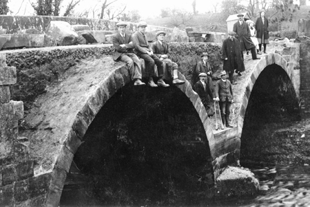In 1819 another pair of arches was built to more than double the width of the bridge. The photograph below was taken during the restoration of Sarn Bridge in 1925 with admiring locals gathered to see progress.