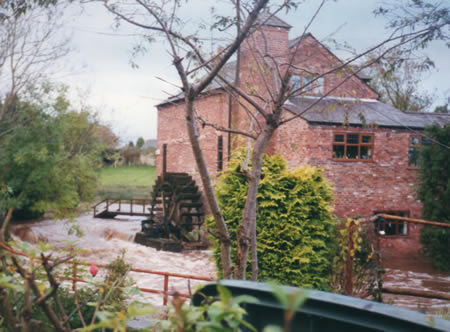 The mill was sold and subsequently converted into a house. The modern building is pictured here when the Wych Brook was in flood. |