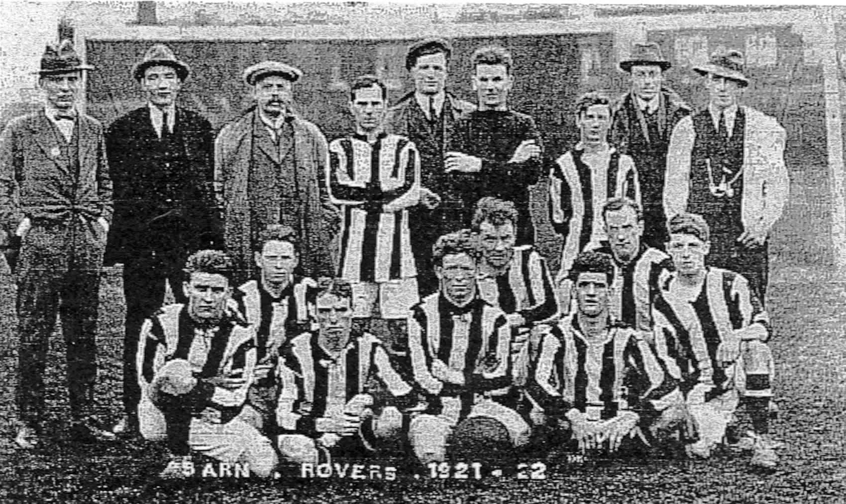 Sarn Rovers started in the winter of 1921/22. They played where they could on fields that were offered by various local people. Early home games were played on a field belonging to Greaves Farm and then they moved to a triangular field just south of Threapwood Church on Sarn Bank Farm.