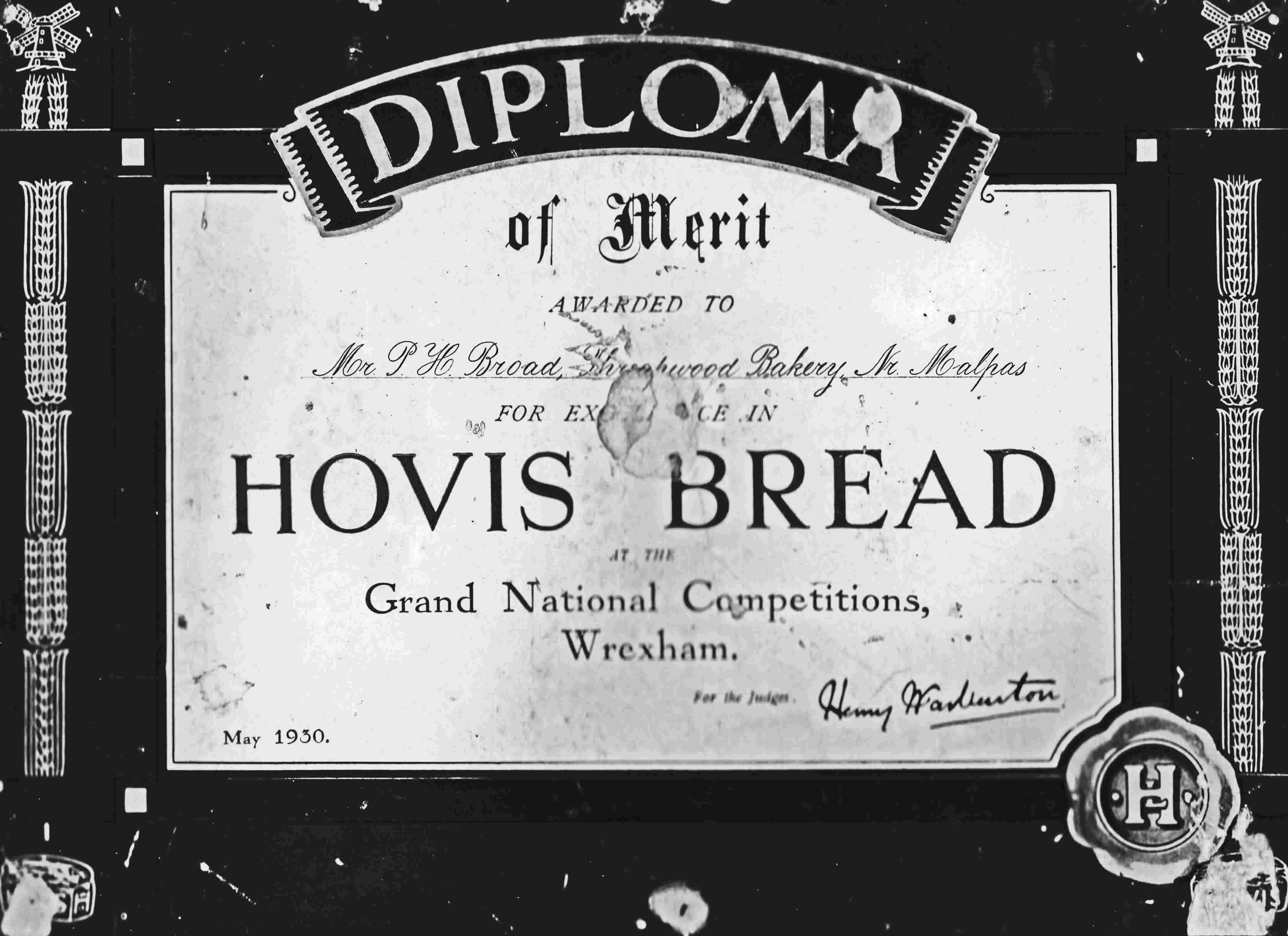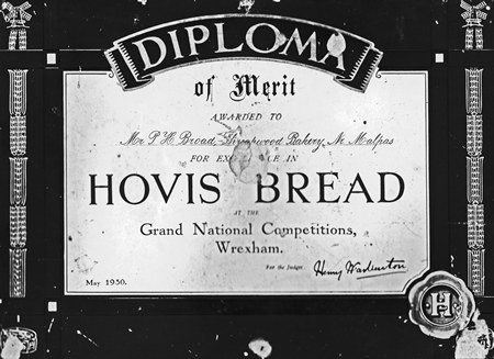 The still familiar name of Hovis Bread was baked on the premises as this Diploma of Merit from 1930 testifies. |