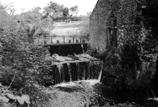 Pic 24 Wych Brook sluice and weir at Sarn Mill circa 1974 |