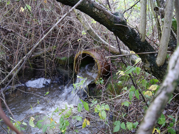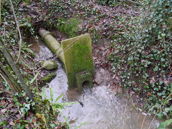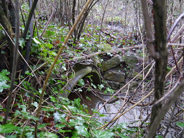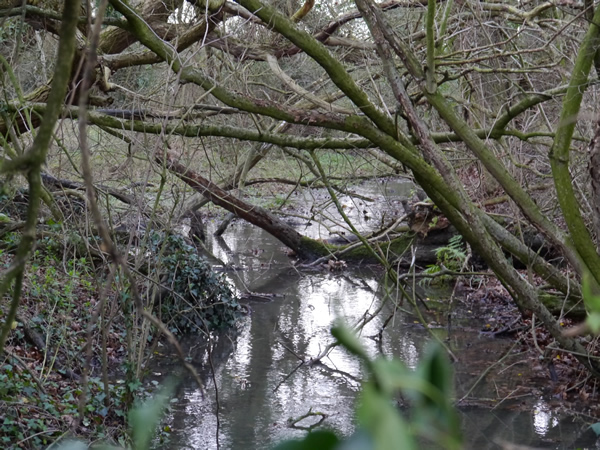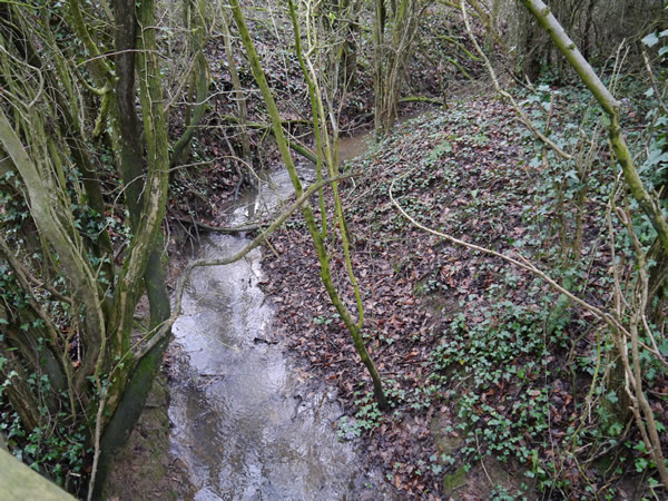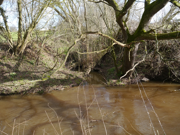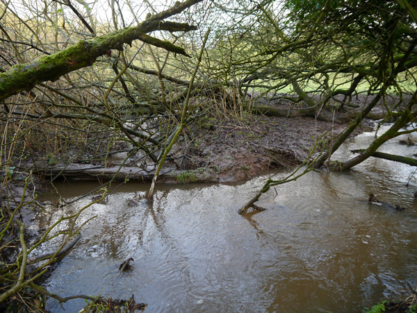 Pic 34 Confluence of Paradise Brook and Wych Brook. When the trees are in leaf this would be hidden from view. |