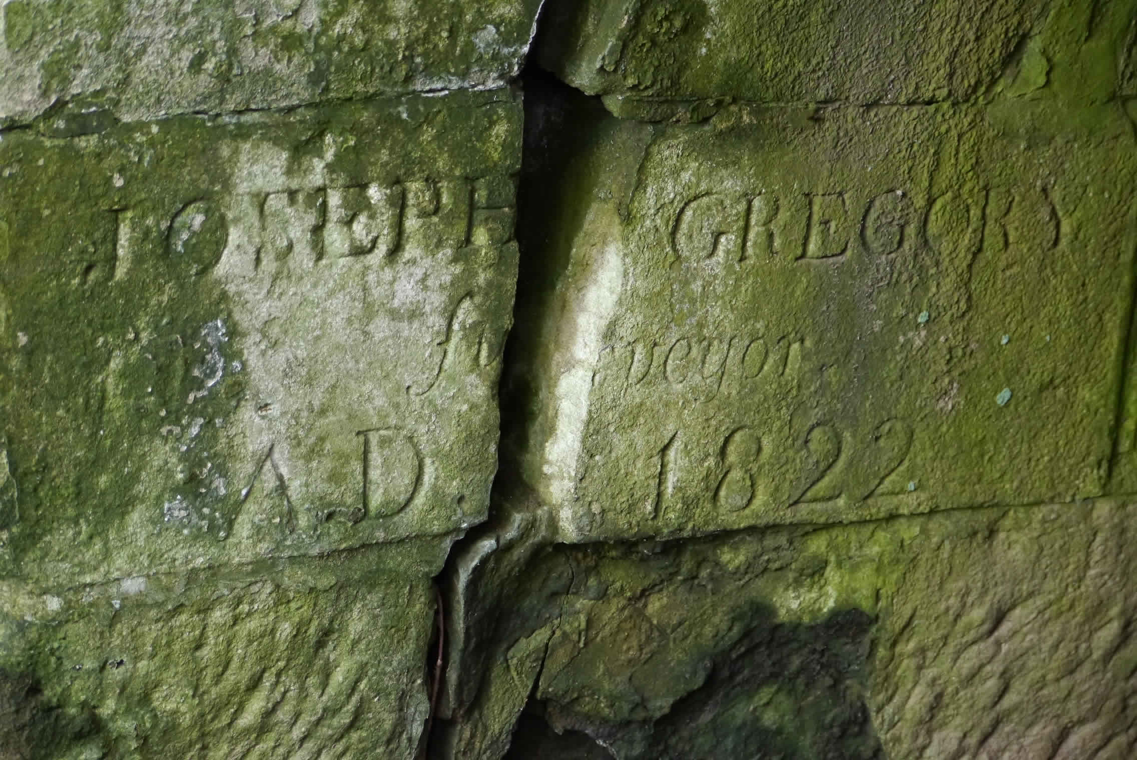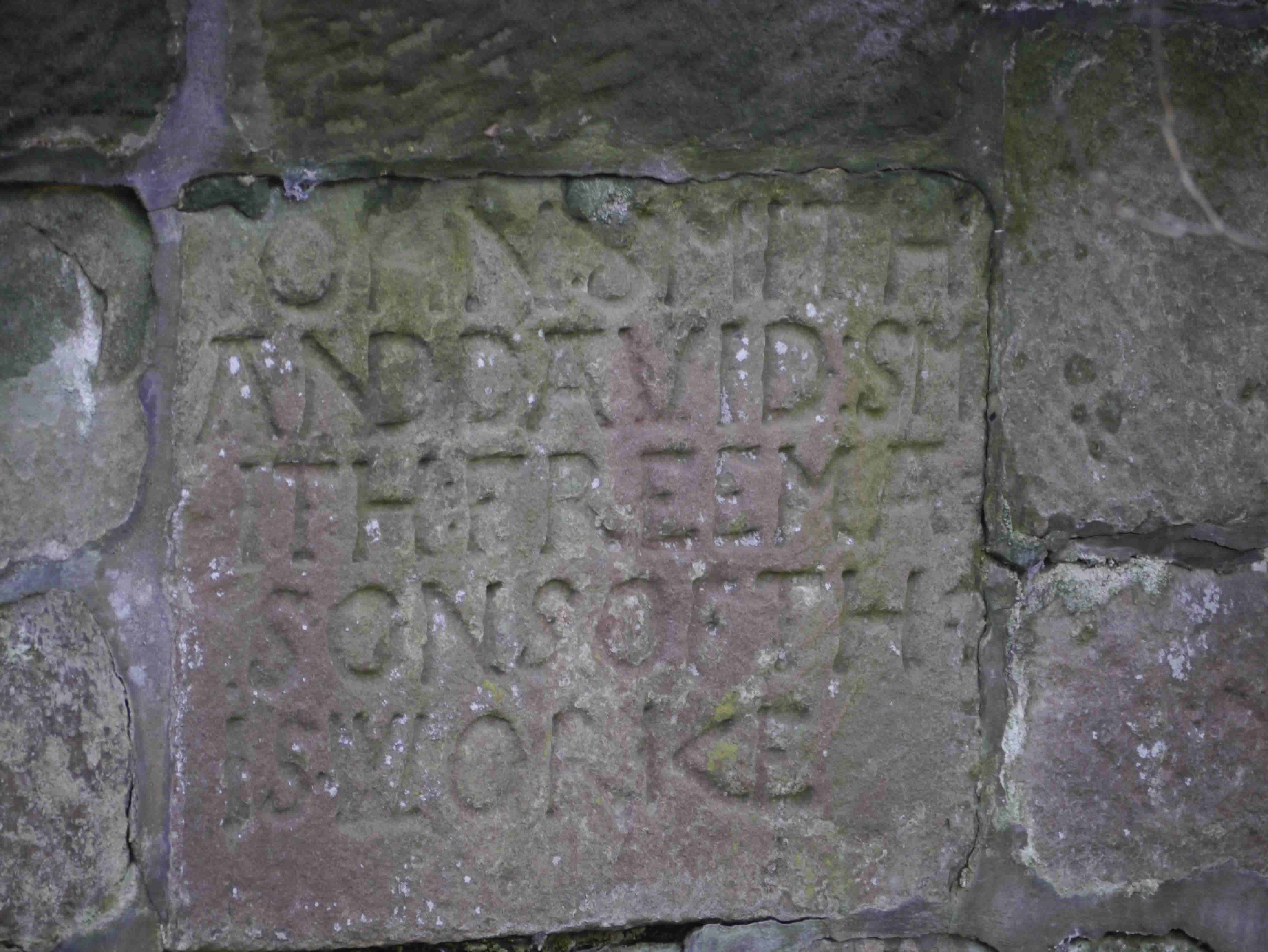 Pic 30 Carved Inscriptions: On the North side of the West spandrel wall the inscription reads - ” John Smith and David Smith : Freemasons of this worke” |