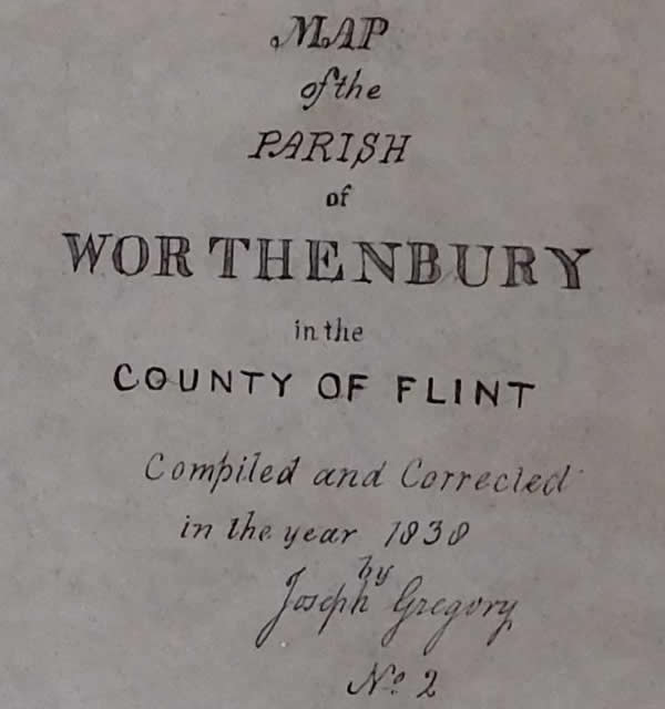 Extract from 1839 Joseph Gregory Tithe map of Worthenbury |